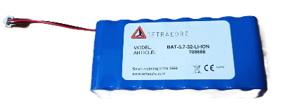 Accumulateur lithium-ion 3.7V 32Ah avec connecteur Tyco pour TRMC-19 (article 739532).