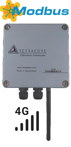 • Transmission des données en 2G/3G/4G au serveur TDS (Tetraedre Data Server, hebergé en Suisse) ou, via TDS sur votre serveur