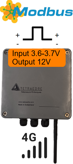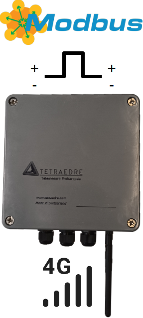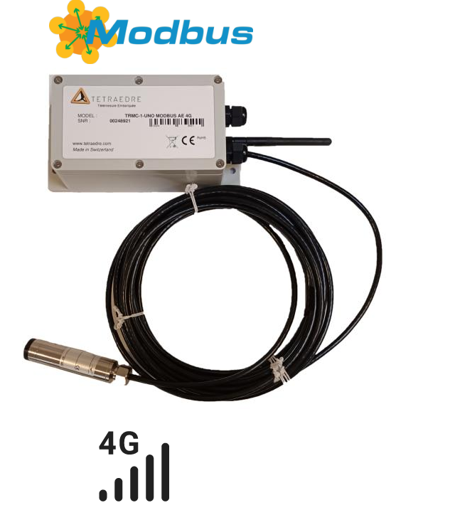 TRMC-7 4G Modbus Impulsions est un enregistreur et télétransmetteur de niveau d'eau, d'impulsions ou de sondes communicant en RS-485 Modbus RTU ou en impulsions.