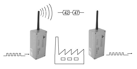 En associant le compteur d'impulsion TRP-10 avec le récepteur TRU-10 on peut facilement créer un "pont radio" pour transmettre des impulsions à distances.